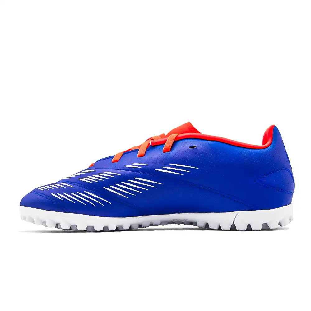Quand le but est dans ta ligne de mire, la Predator adidas transforme la pression en extrême précision. Avec des éléments Strikeprint sur le côté intérieur et une couche de mousse, la tige synthétique de cette chaussure de football Club allie style et confort. Sa semelle extérieure en caoutchouc à crampons te permet de jouer à ton meilleur niveau sur terrain turf.